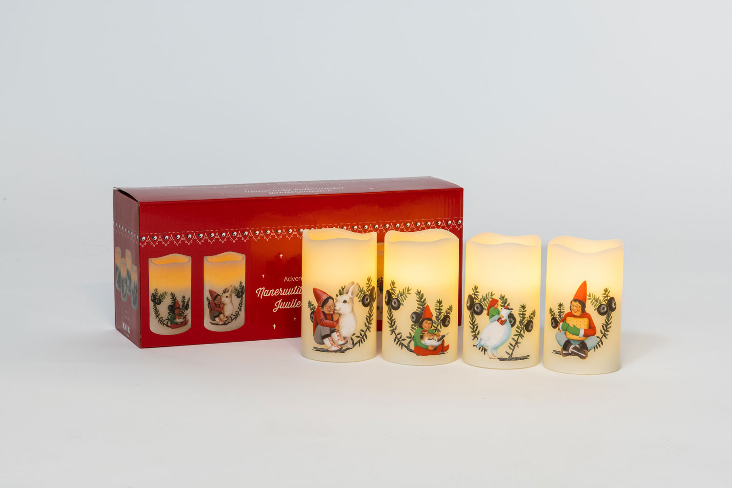 Naneruutit stearinimik sanaajupput qangalu naneruutitut qaammaaritsigalutik. Naneruutit tamarmik 7,5 x 12,5 cm-itut angitigaat batteriinillu AA-nik atortuligassaallutik – taakku poortukkami ilaanngillat.